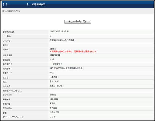 | 4. | 申込情報一覧から参照ボタンをクリックすると申込情報の詳細が表示されます。 | ||||||||||||||||||||