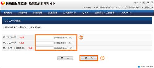 | 2. | 旧、新パスワードを入力してください。 | ||
