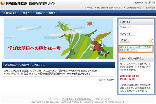 ① | 「ログインID、パスワードをお忘れの方は、こちら」をクリック | |
