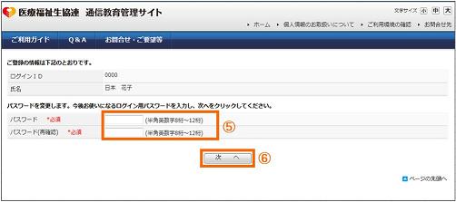 今後お使いになるログイン用パスワードを2回入力 「次へ」をクリック |