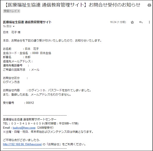 | 5. | 完了後、確認メールが届きます。(返信先メールアドレス入力時のみ) | ||
