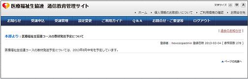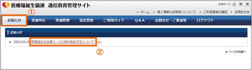 | 1. | ログイン後、トップ画面の「お知らせ」をクリックしてください。 | ||